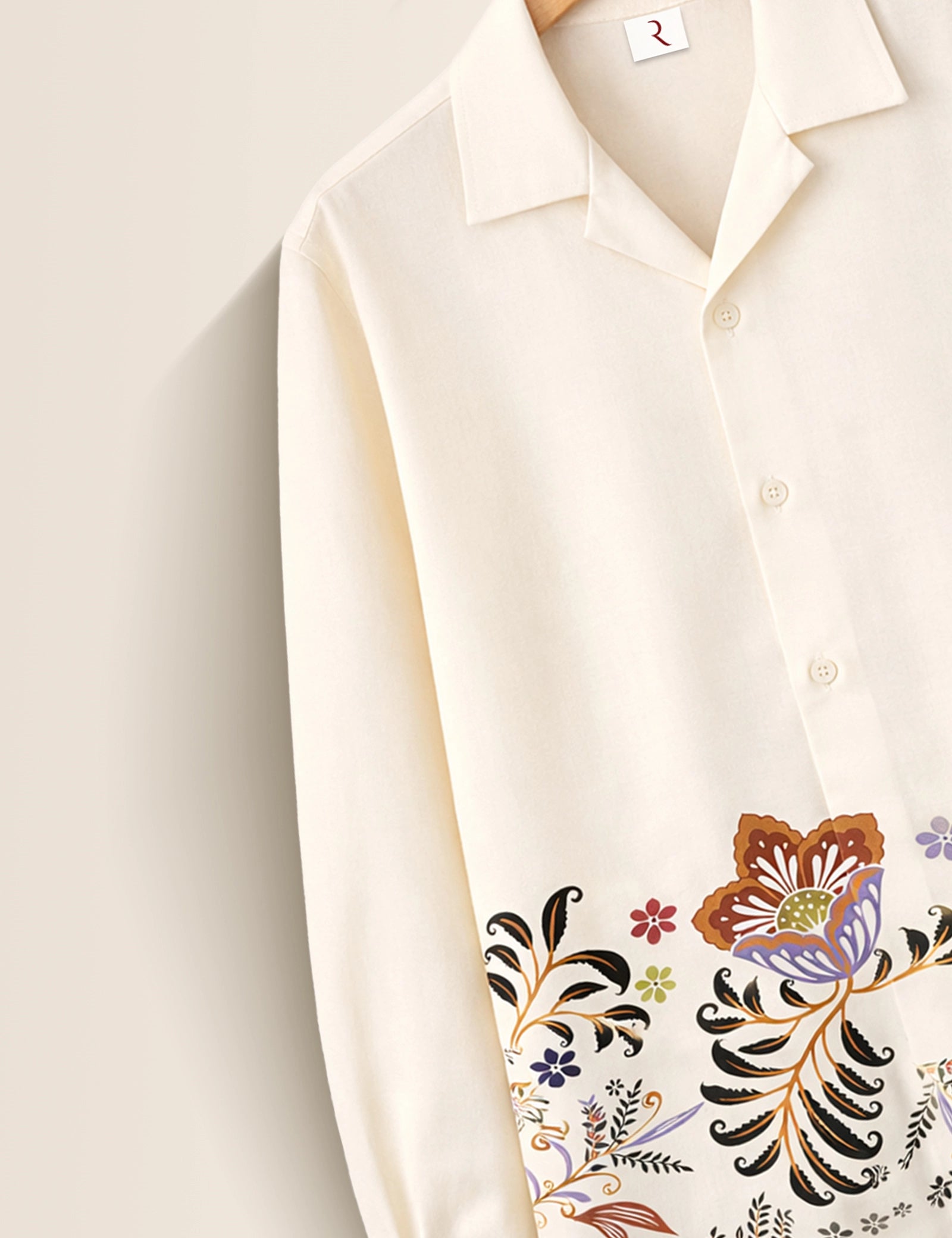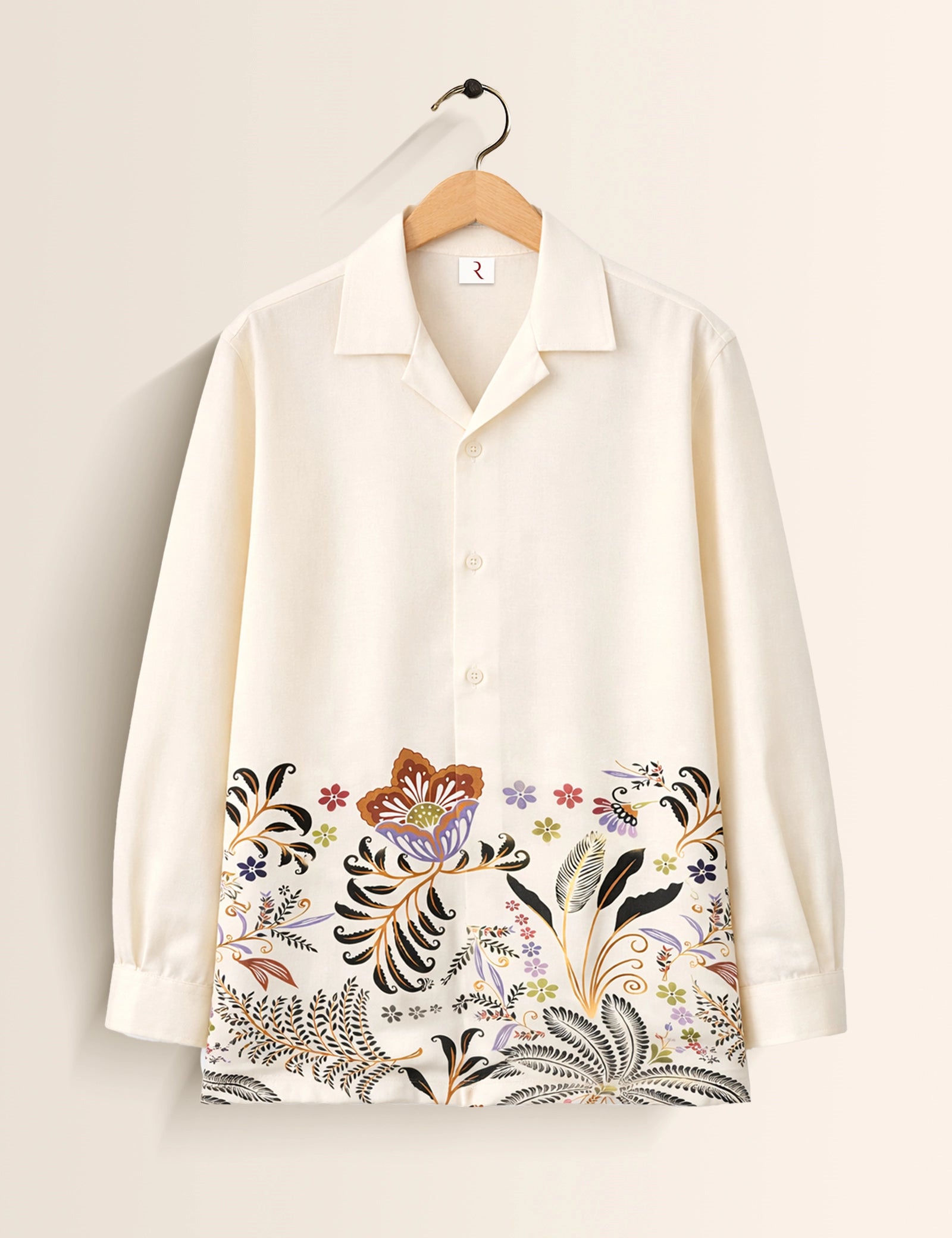 White Flower Printed Mens Exclusive Stylish Full Sleeves Shirt - XPST