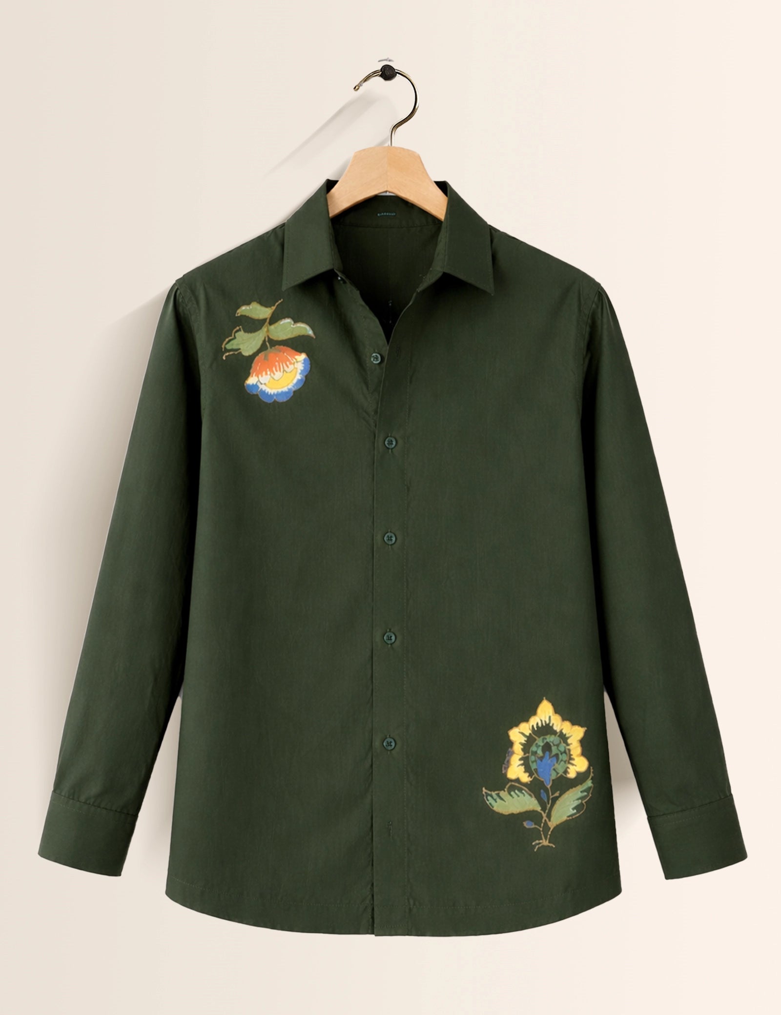 Olive Floral Men's Exclusive Stylish Full Sleeves Shirt - XPST